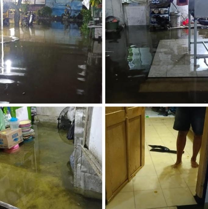 Sidoarjo, Pointernews.id | 25 Februari 2025 – Hujan deras yang mengguyur wilayah Sidoarjo selama beberapa jam terakhir menyebabkan banjir di berbagai titik, termasuk di Kampung Praban Barat, RT. 002, RW. 001, Kelurahan Sidokare, Kecamatan Sidoarjo, Kabupaten Sidoarjo. Akibatnya, banyak rumah warga terendam banjir setinggi lebih dari 50 centimeter, membuat aktivitas sehari-hari terganggu. Hingga saat ini, belum ada tindakan konkret dari pihak pemerintah untuk mengatasi masalah ini, sehingga warga setempat merasa khawatir akan dampak lanjutan jika tidak segera ada solusi.