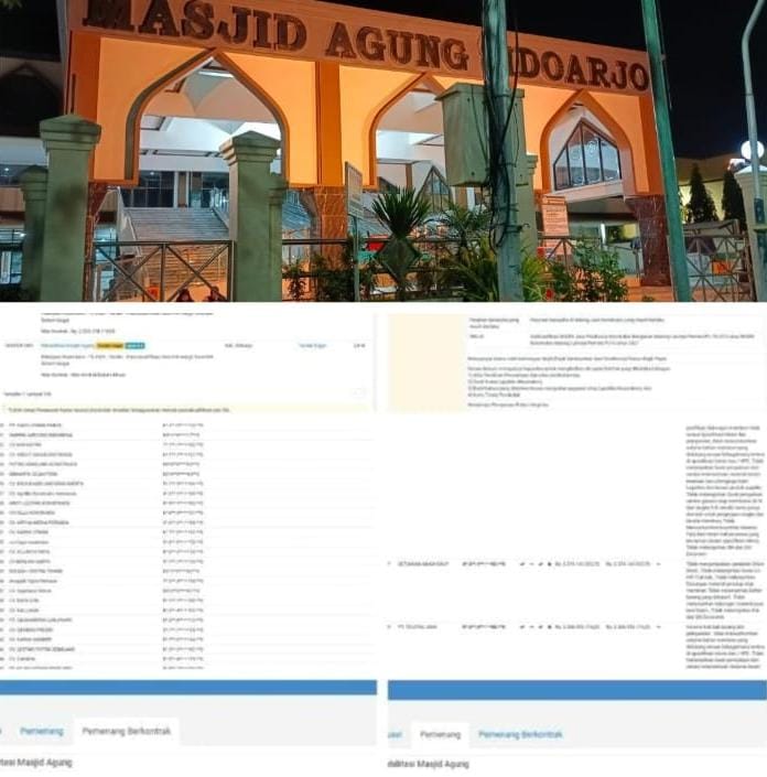 Sidoarjo, Pointernews.id | 15 April 2025 – Dalam proses tender proyek Rehabilitasi Masjid Agung Sidoarjo yang diselenggarakan oleh Lembaga Pengadaan Secara Elektronik (LPSE) Kabupaten Sidoarjo, terdapat beberapa temuan yang diduga melanggar ketentuan peraturan perundang-undangan.