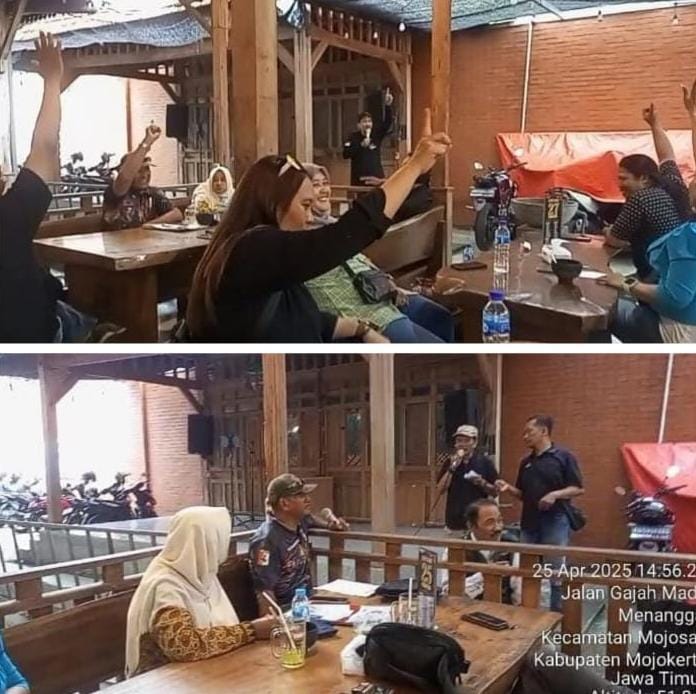Mojokerto, Pointernews.id | 25 April 2025 – Persatuan Wartawan Mojokerto (PWM) resmi membentuk susunan pengurus baru periode 2025-2028 dalam rapat yang digelar di Soto Senit, Mojosari, Mojokerto. Rapat berlangsung sukses dan lancar, serta dihadiri oleh sejumlah wartawan dari berbagai media di wilayah Mojokerto.