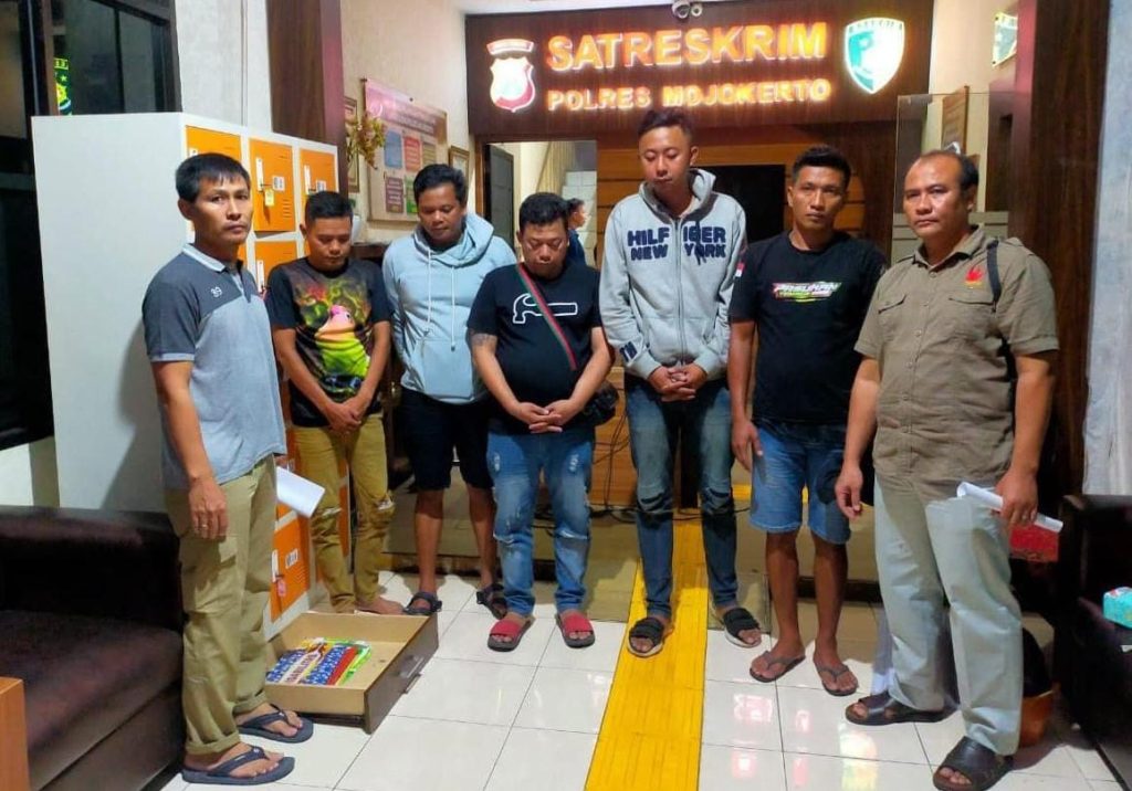 Kelima terduga pelaku adalah Daroji (36), warga Desa Watesnegoro, Ngoro, Mojokerto; Jonathan Adi Prabowo (30), warga Desa Sawojajar, Kedungkandang, Malang; Hariyanto (41), warga Desa Kalipuro, Pungging, Mojokerto; Umar Hidayat (48), warga Kelurahan Tambakrejo, Simokerto, Surabaya; serta Samsul Samsudin (38), warga Kelurahan/Kecamatan Simokerto, Surabaya.