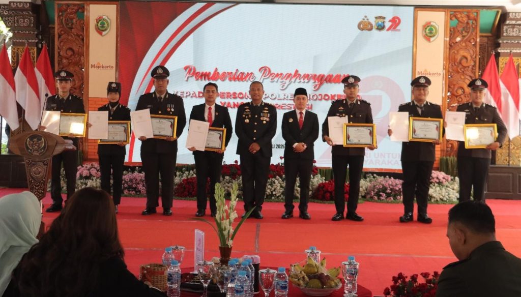 Penghargaan tersebut diberikan sebagai bentuk apresiasi atas dedikasi dan prestasi luar biasa yang telah ditunjukkan oleh para personel dalam menjalankan tugas menjaga keamanan dan ketertiban masyarakat di Kabupaten Mojokerto.