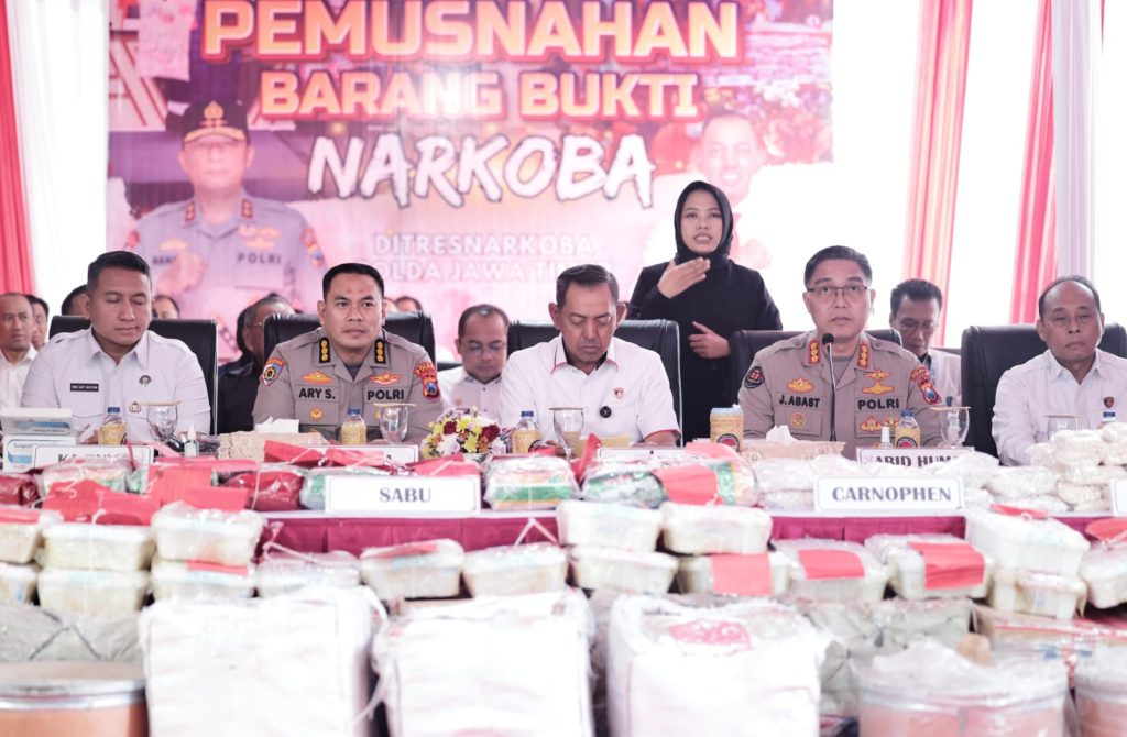 Barang bukti yang dimusnahkan mencakup, Sabu: 49.054,582 gram, Ekstasi: 2.860 butir, Carnophen (Pil dobel L): 1.077.840 butir, Okerbaya: 5.688.600 butir.