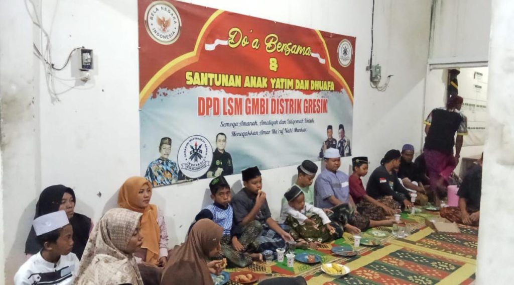 Puluhan anak yatim dan dhuafa hadir dalam acara ini, yang dipimpin langsung oleh para ustadz, sesepuh desa, serta Ketua DPD LSM GMBI Distrik Gresik, Muhammad Hudin. Dalam sambutannya, beliau menyampaikan bahwa kegiatan ini merupakan monumen spiritual yang sangat penting, sebagai bentuk implementasi nilai-nilai amar ma’ruf nahi munkar.