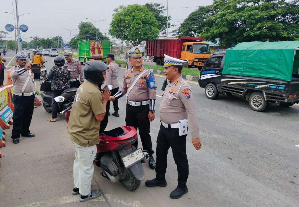 Petugas menyisir area jembatan untuk memantau arus lalu lintas sekaligus memberikan edukasi langsung kepada pengguna jalan.